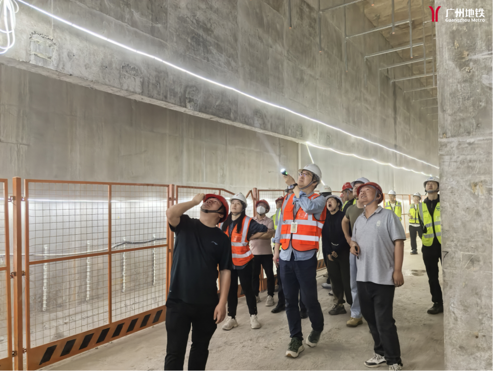 在地铁二十二号线芳村站的施工现场,机电安装及车站装修等工序正如火如荼地开展,广州地铁建设公司第七建管部副总监王玮正在带队逐项检查工作计划落实情况,重点关注车站装修推进、成品保护以及地面恢复等工序,深入到站厅层、站台层各个工作面,督促现场管理人员做好工序间协调和细节管理,保质保量,尽快实现车站移交运营单位调试的目标。