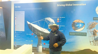 SKA中频望远镜装配、集成与验证部门负责人奥斯卡·莫约介绍项目情况。人民日报记者 邹松 摄