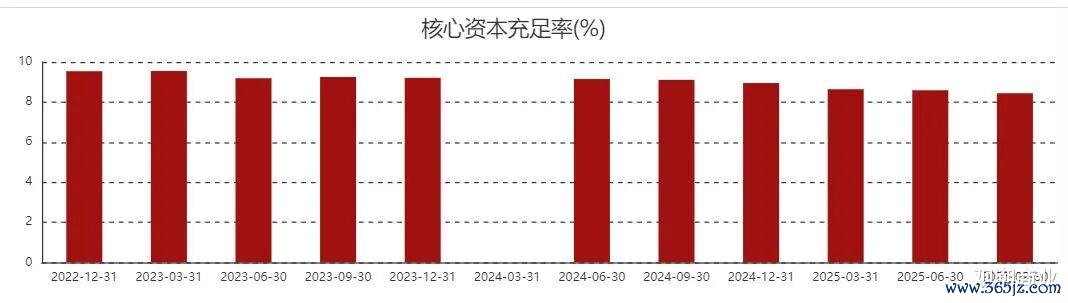 一方面,资本充足率不足形成硬性约束。根据相关政策,系统重要性银行的核心一级资本充足率通常为8.5%。北京银行属于系统重要性银行,所以实际需要满足的监管红线是8.5%,但2020年至2025年三季度末,其核心一级资本充足率分别为9.42%、9.86%、9.54%、9.21%、8.95%、8.44%,2025年三季度已跌破监管红线。