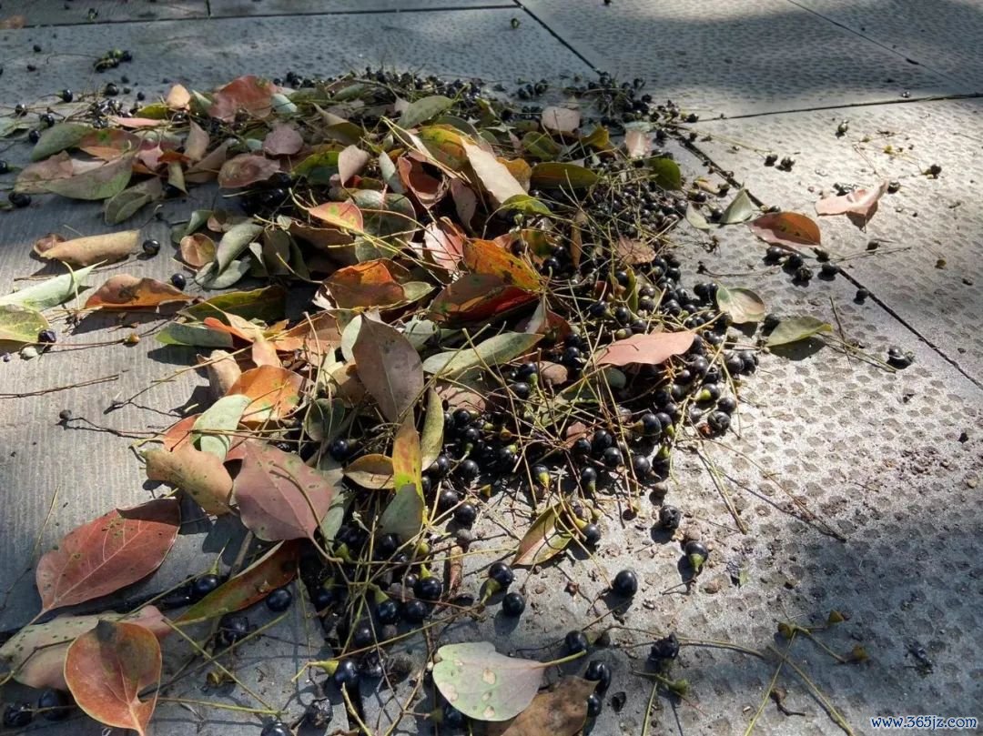 这些满地都是的“黑珍珠”其实是香樟树的果实,即樟树籽。这个季节是它们成熟后的自然掉落期。
