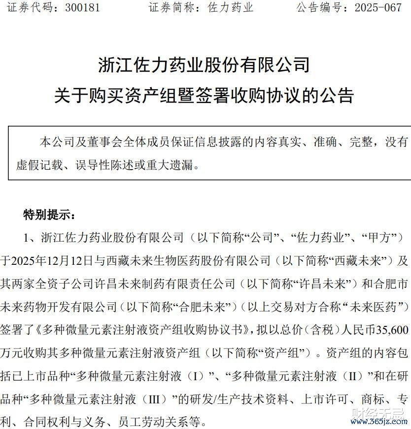 就在双十二购物节的热度刚刚褪去之时,中药明星企业佐力药业(300181.SZ)(浙江佐力药业股份有限公司)的一纸收购公告引发了市场关注。